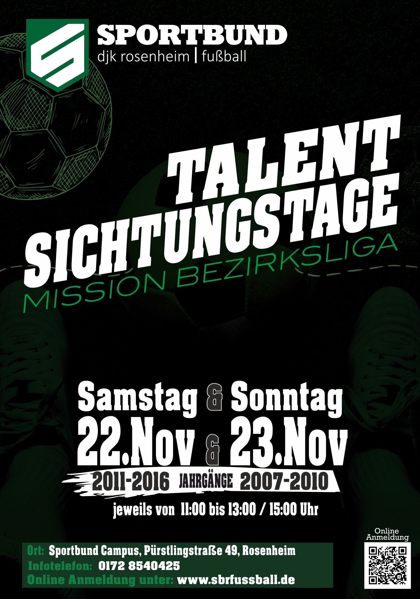 Infotelefon: 01728540425, Anmeldung Online: www.sbrfussball.de
